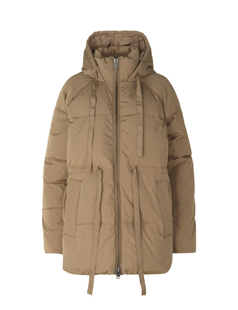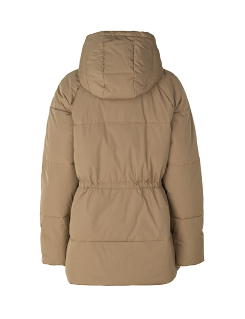 - De jas heeft donsvulling tussen de voering en de buitenstof, wat isoleert en de warmte vasthoudt