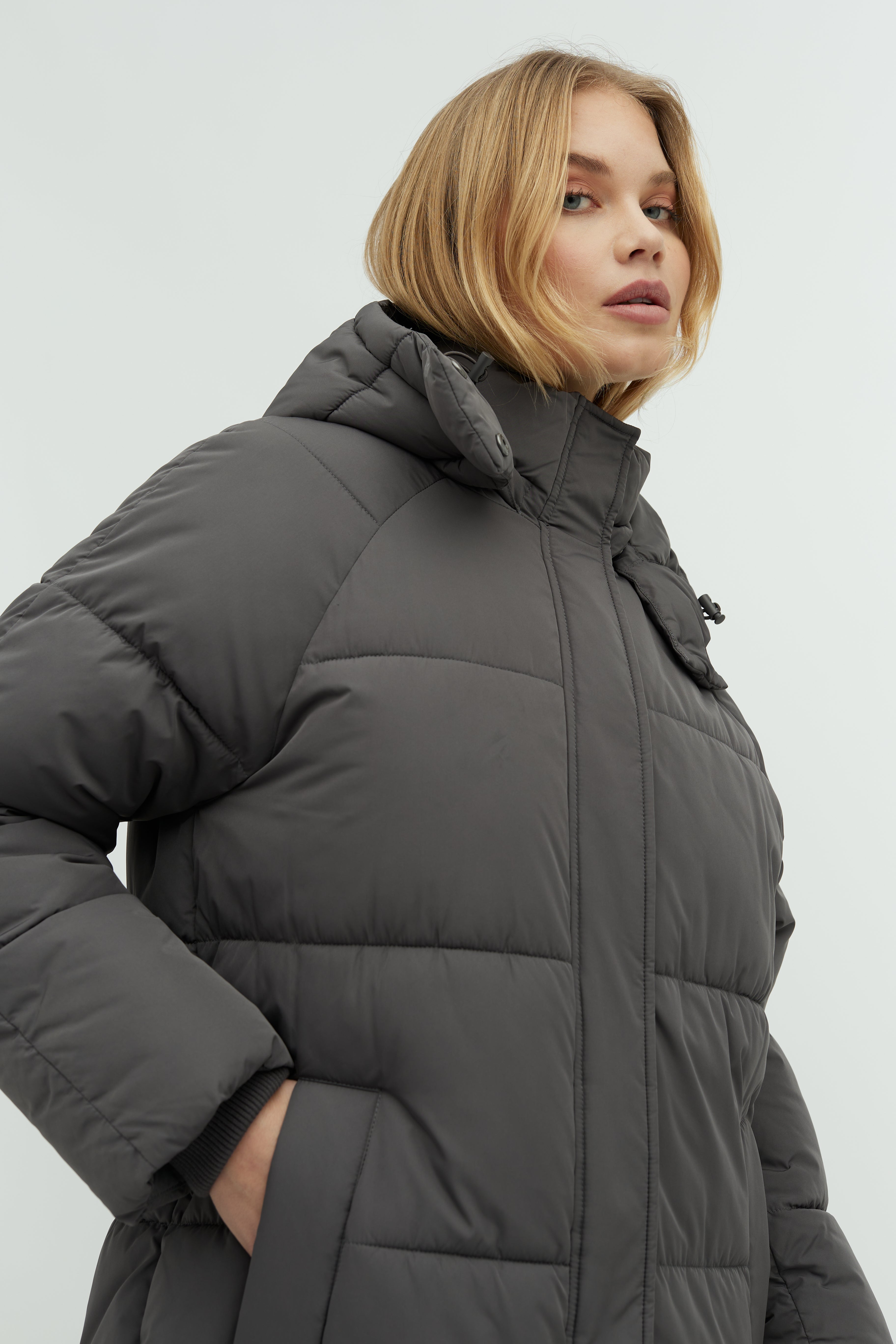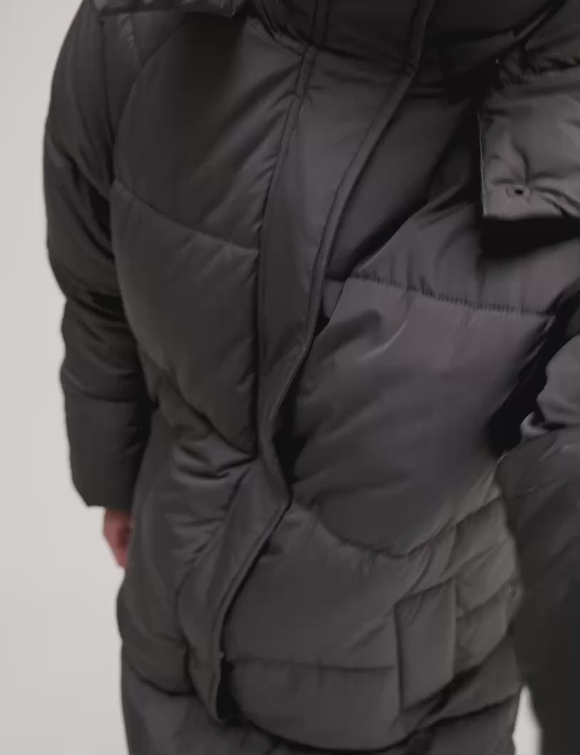 - Lange mouwen met verborgen elastiek bij de manchetten