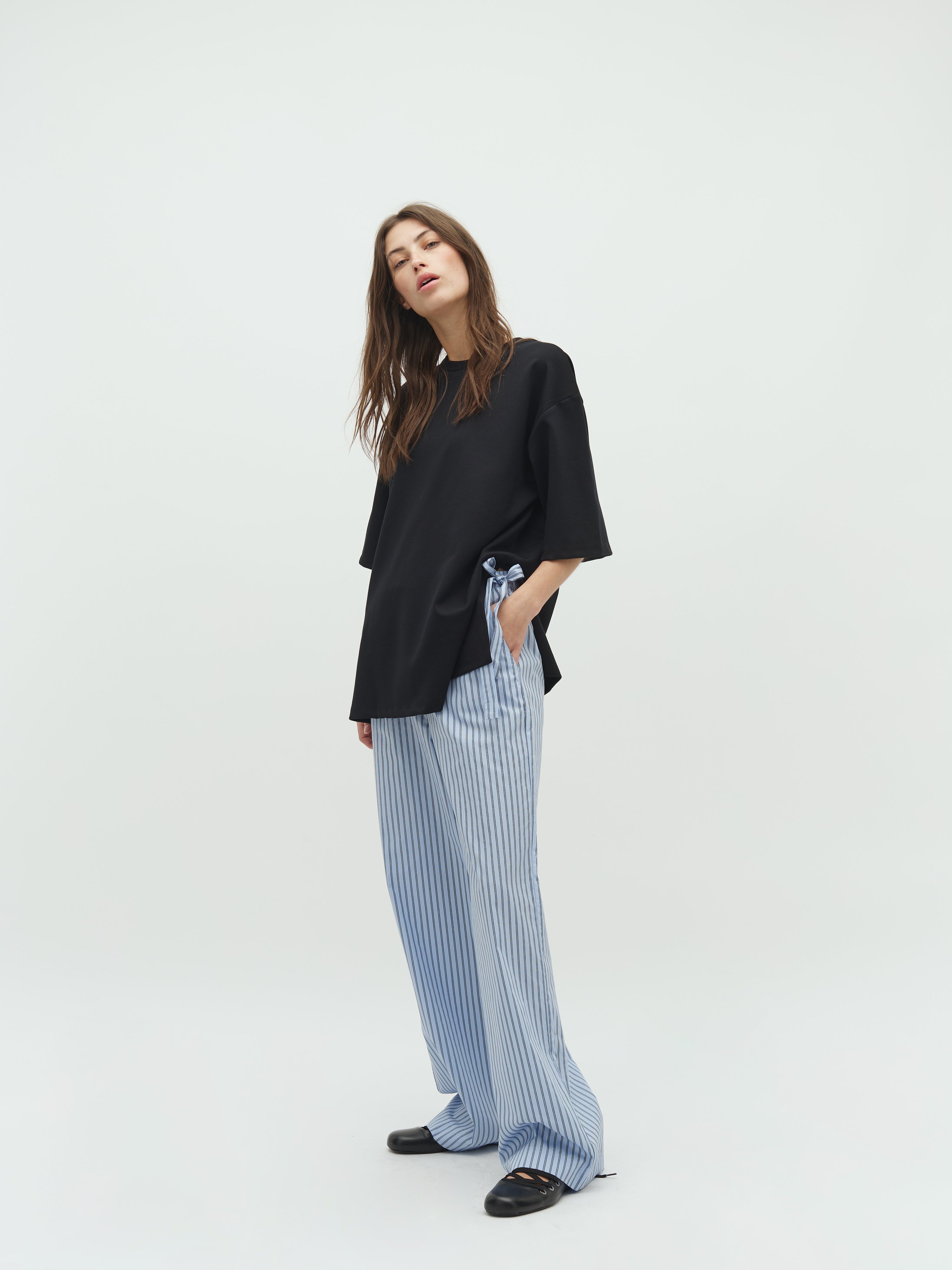 Losvallend T-shirt met korte mouwen en zijsplit.