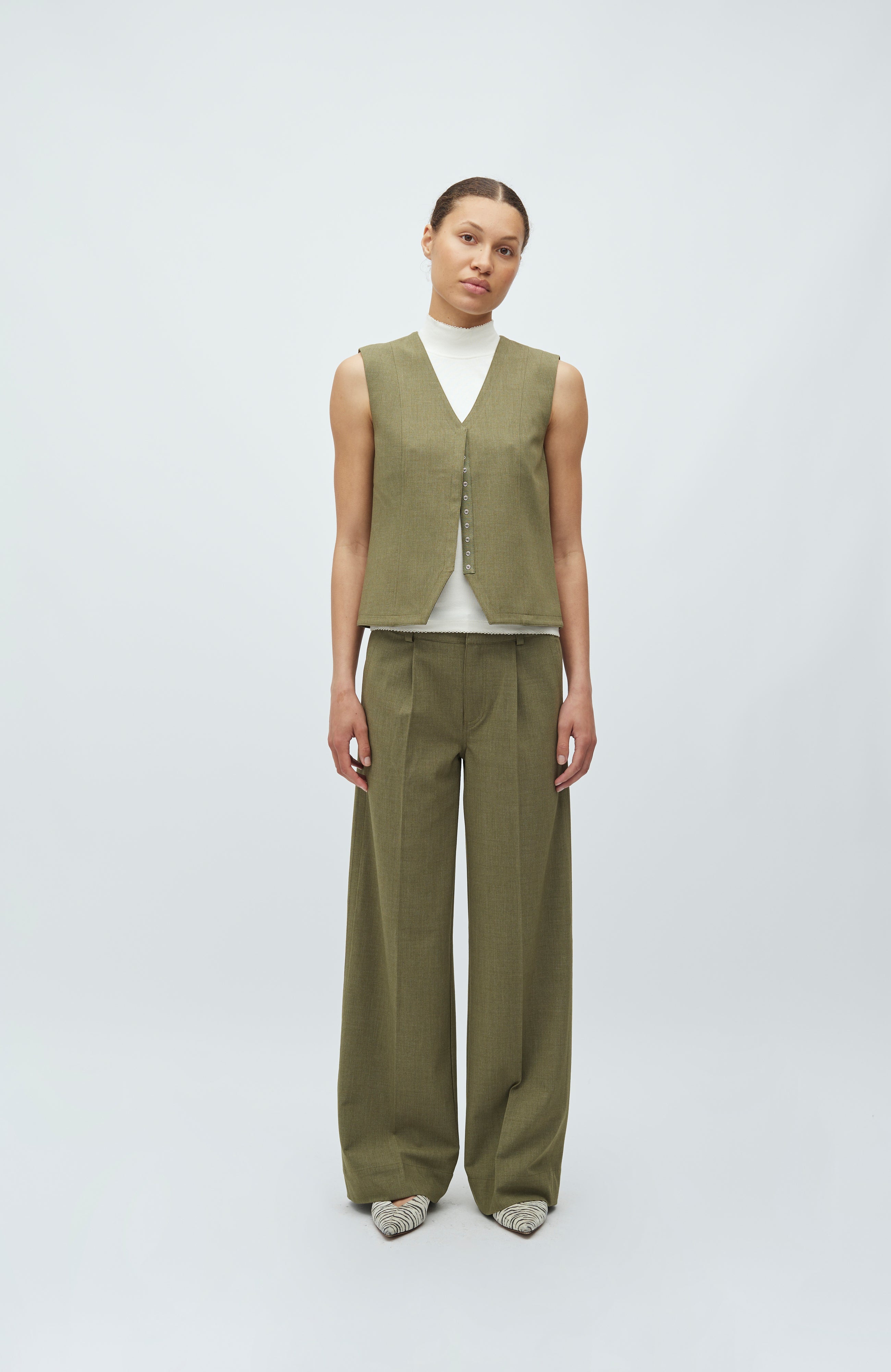 Flavina-M Gilet - Dusty Olive Melange