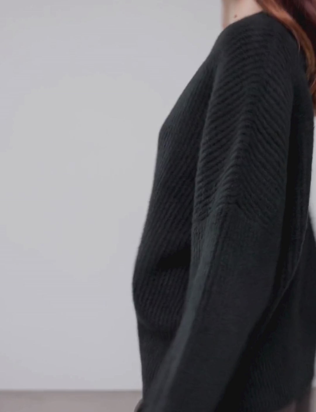 Gebreide trui met ronde hals en verlaagde schouders.