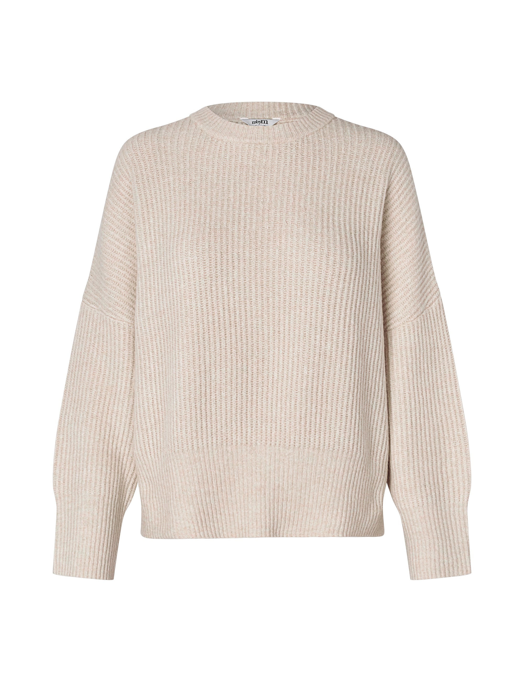 Gebreide trui met ronde hals en verlaagde schouders.