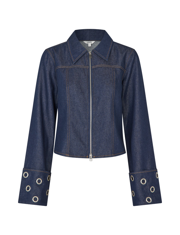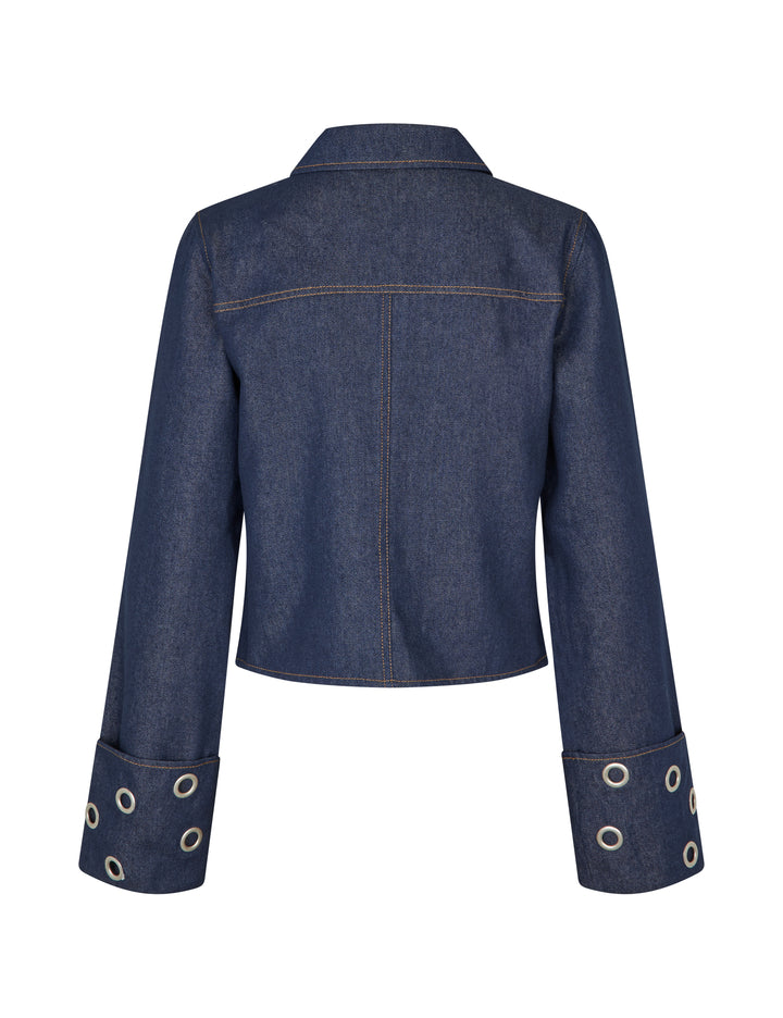 Denimjack met oogjesdetails
