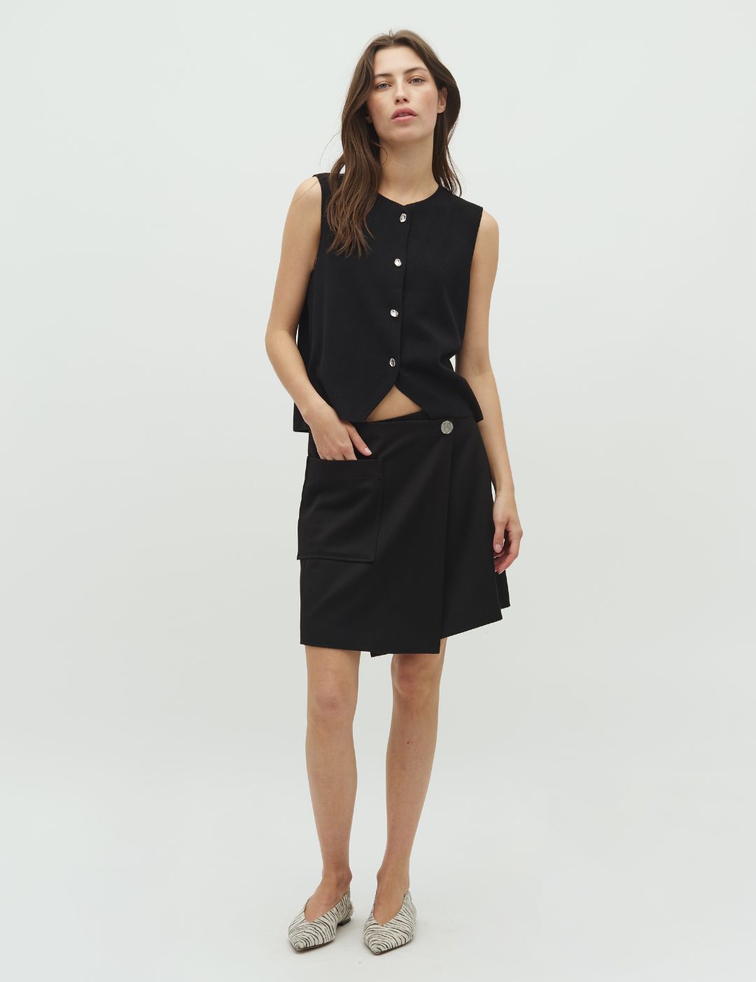Korte rok met een grote zak aan de zijkant.