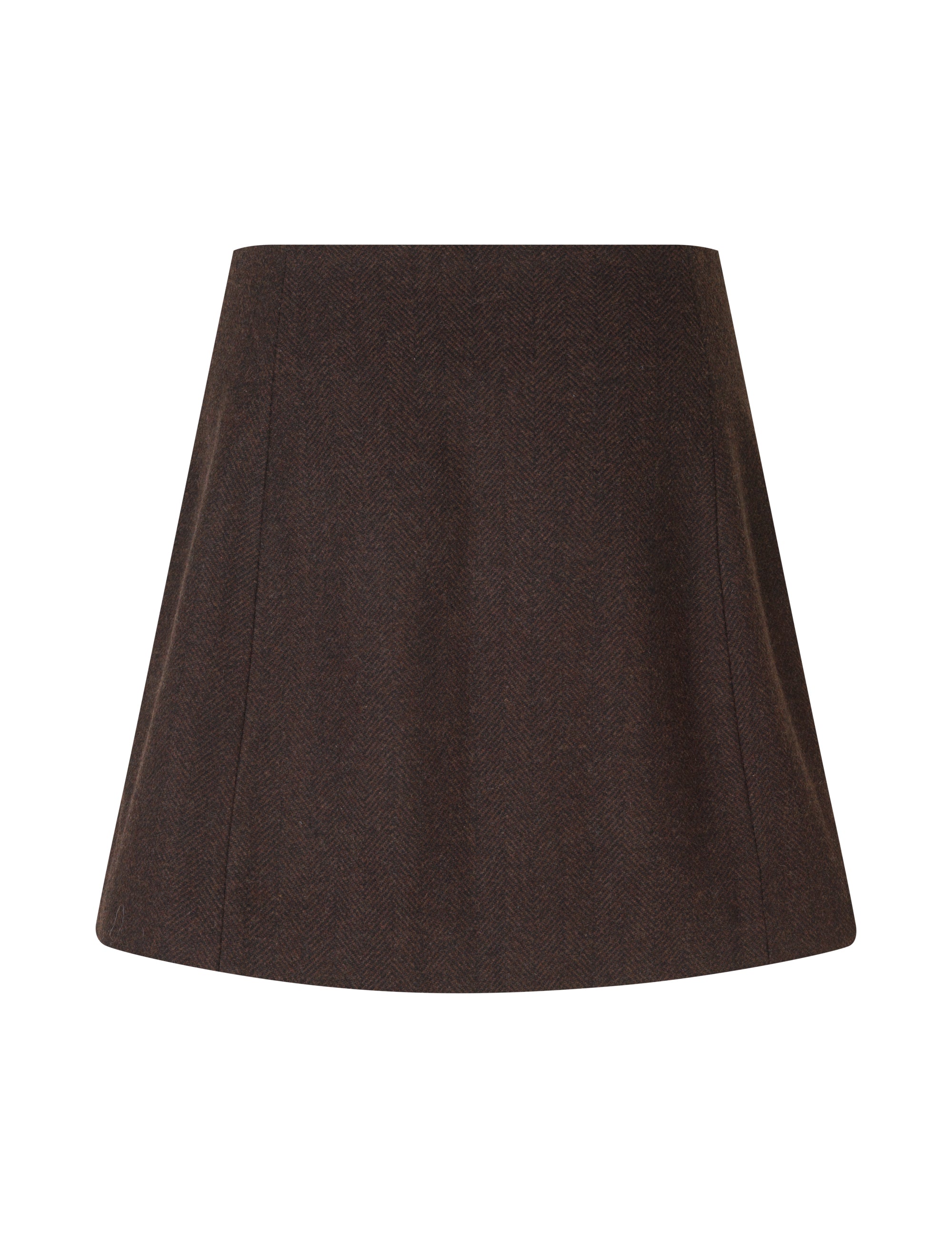Korte rok met schuine sluiting.