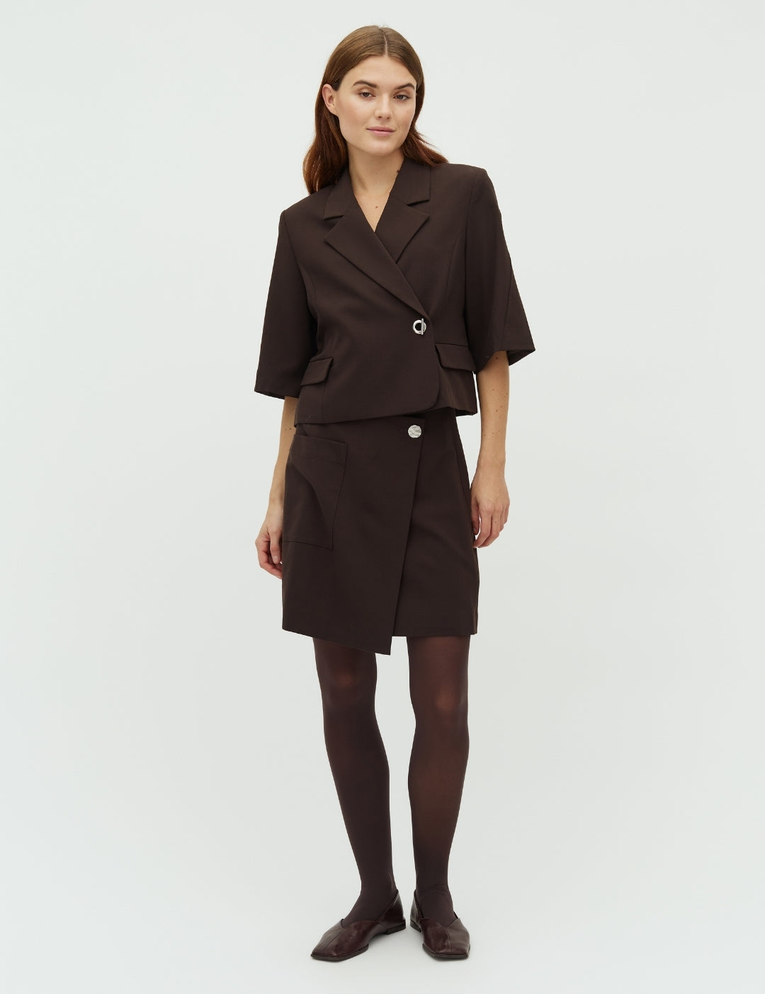 - Moet aan een hanger drogen. In model brengen terwijl het vochtig is.