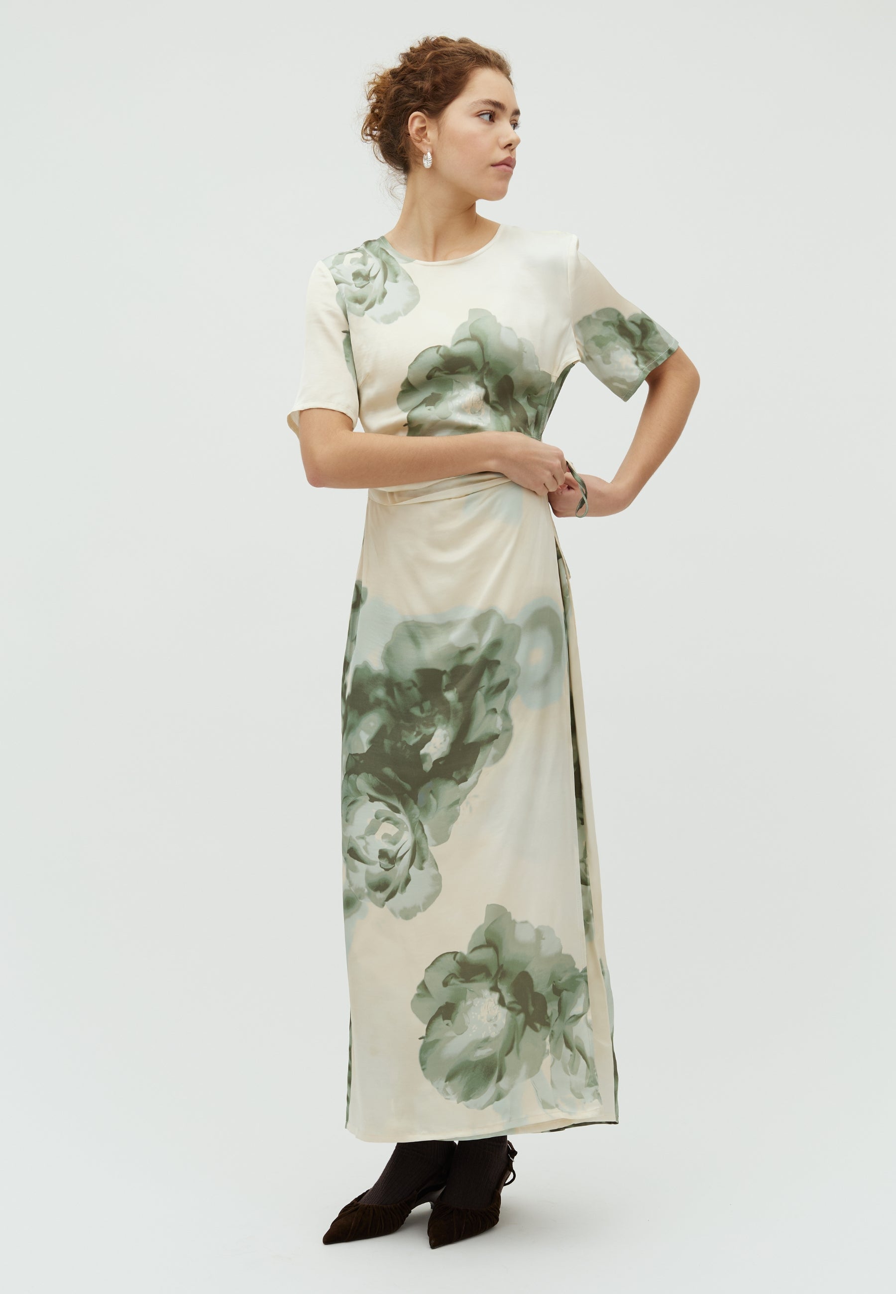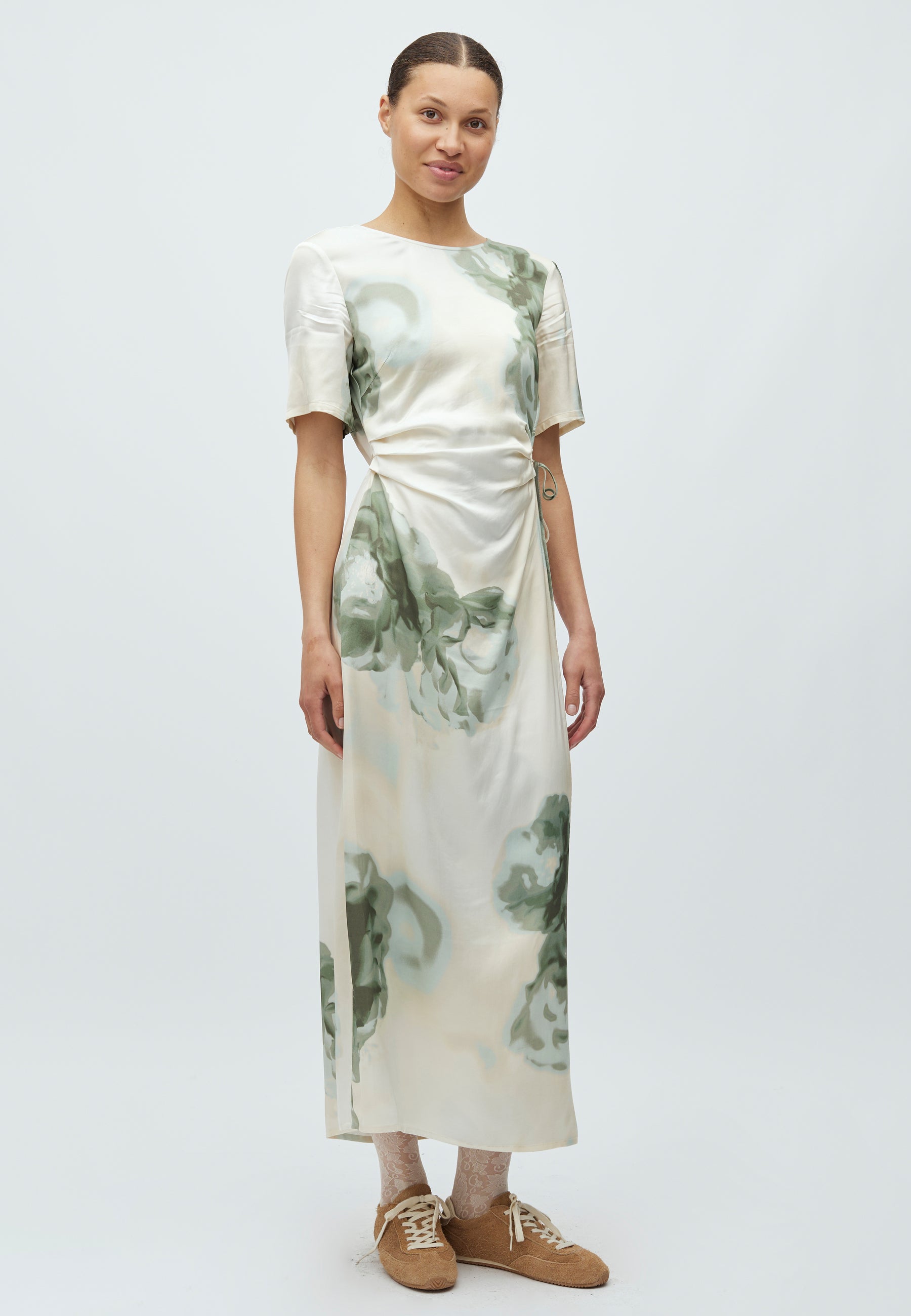 Het model is 179 cm lang en draagt maat S.