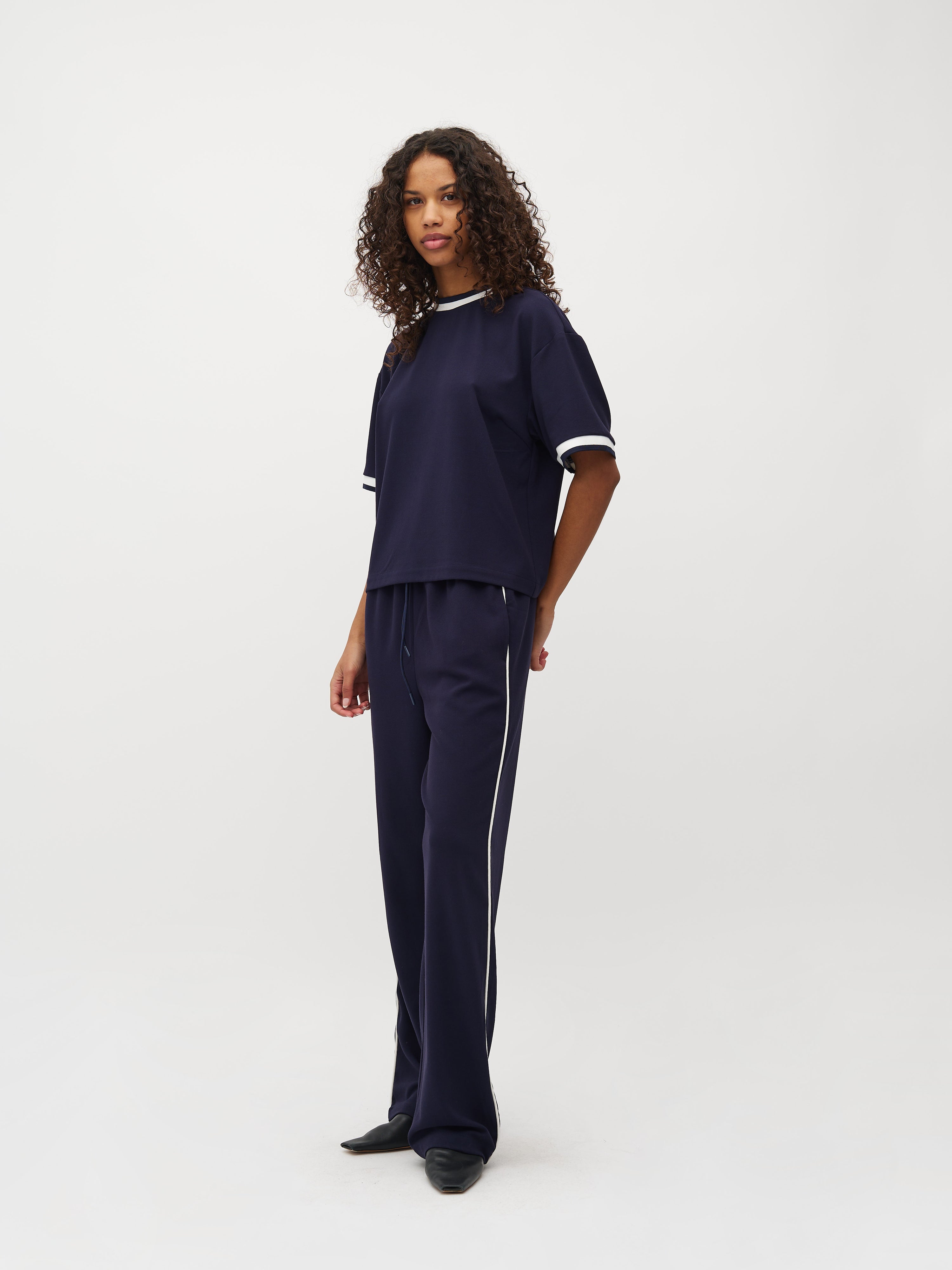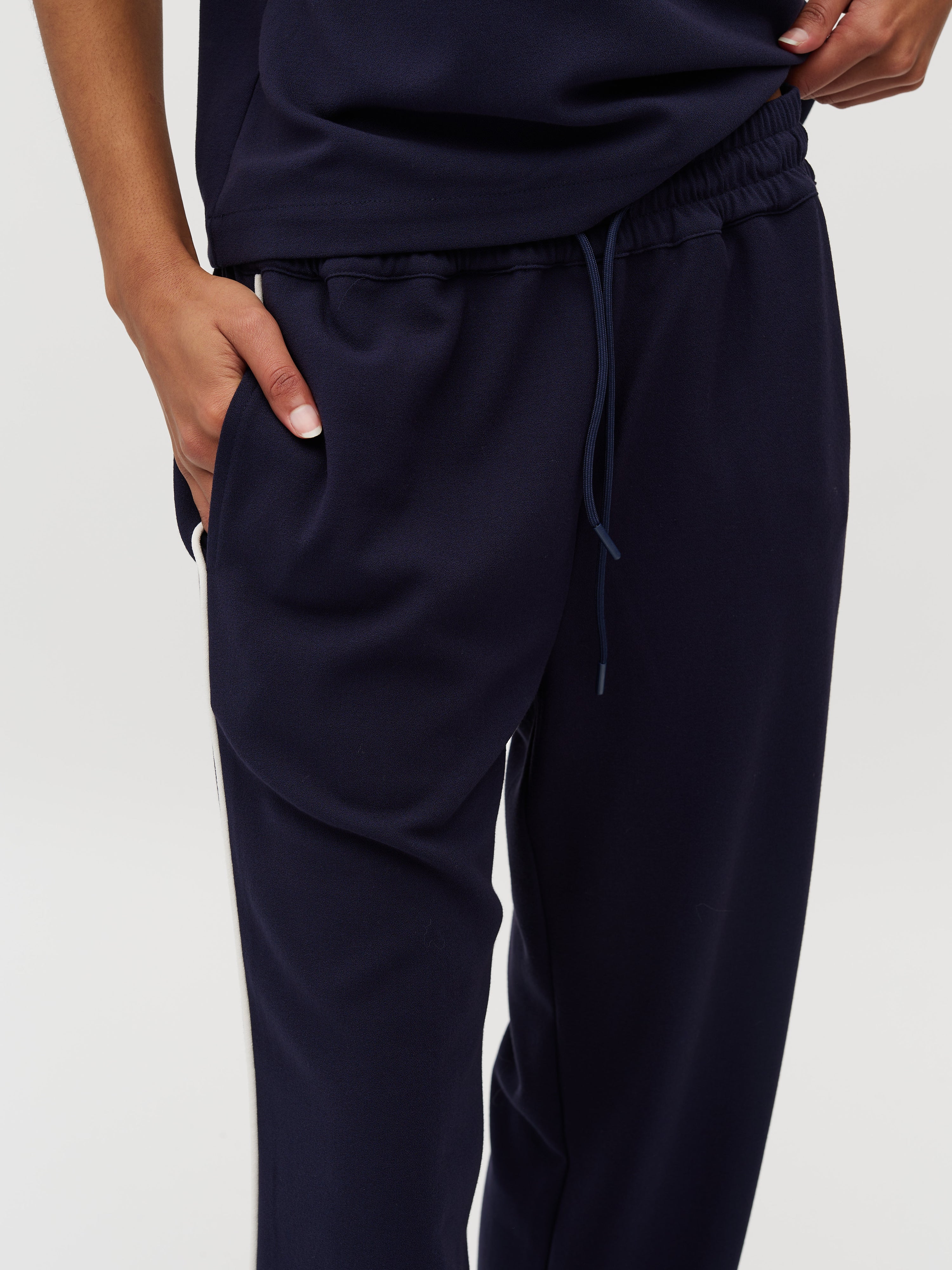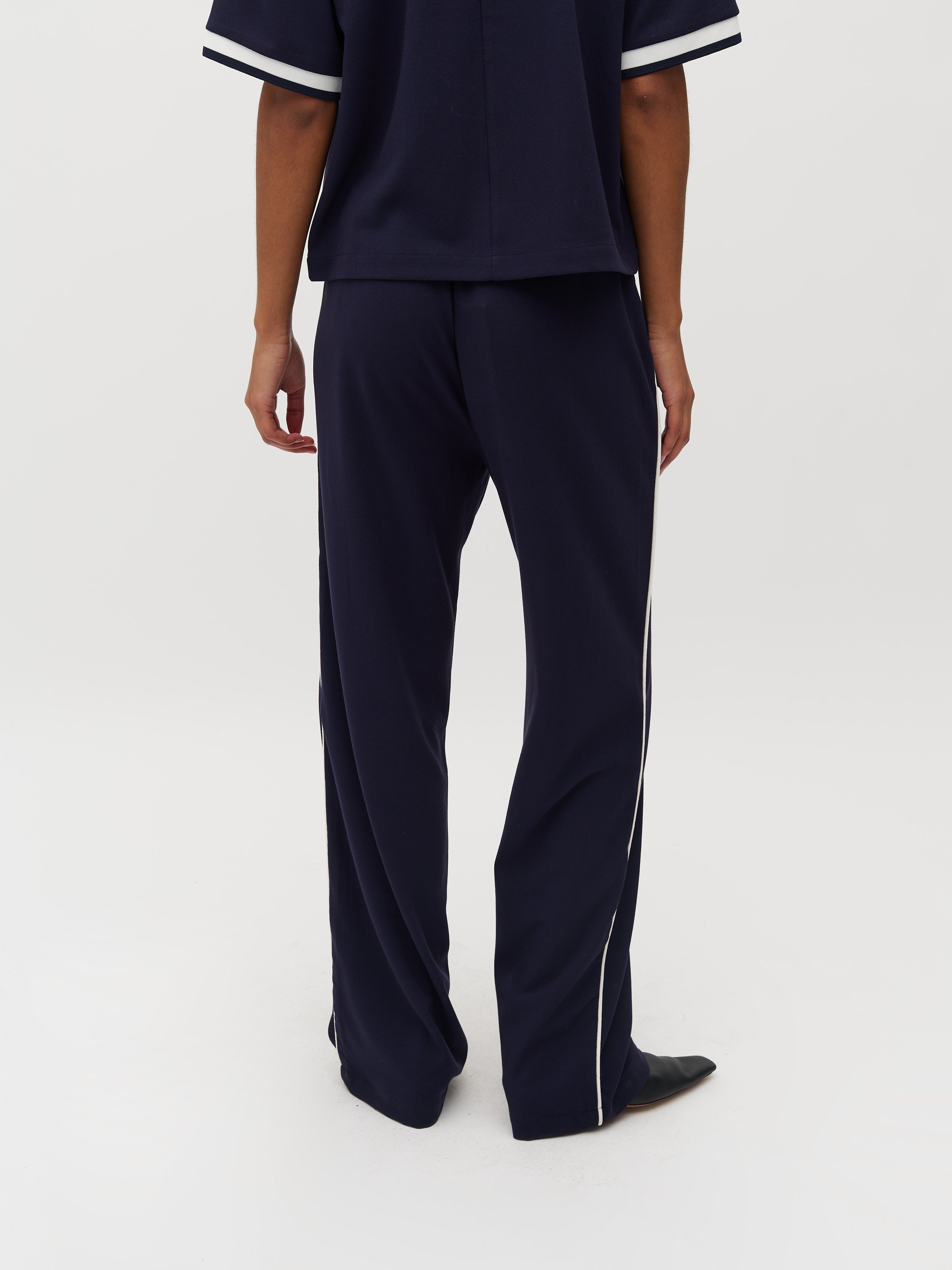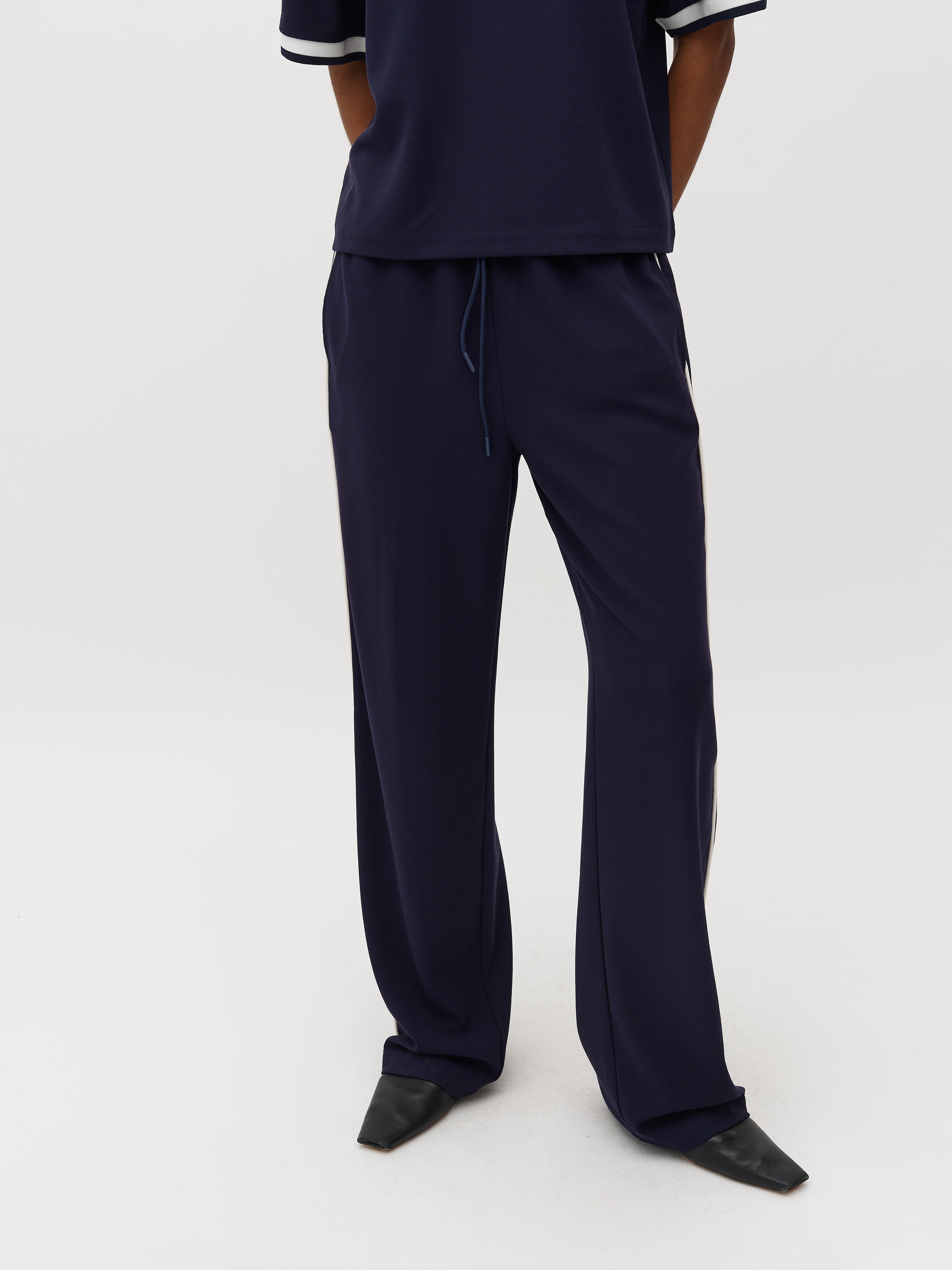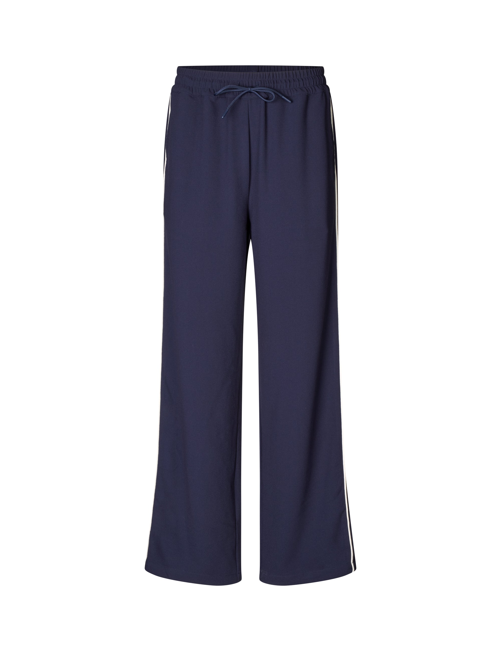 Losse broek met een streep aan de zijkant en elastiek in de taille.