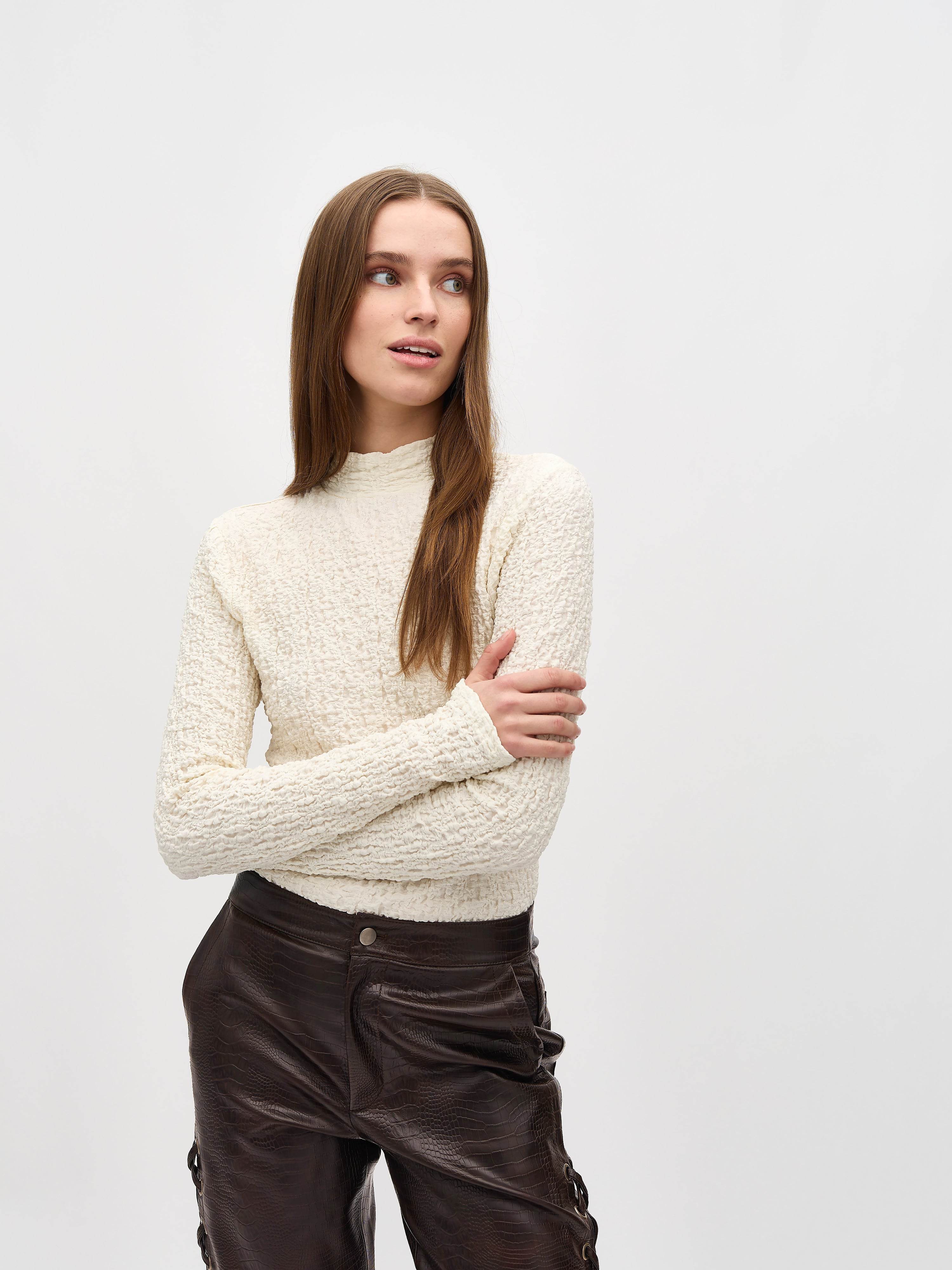 Nauwsluitende blouse met structuur.