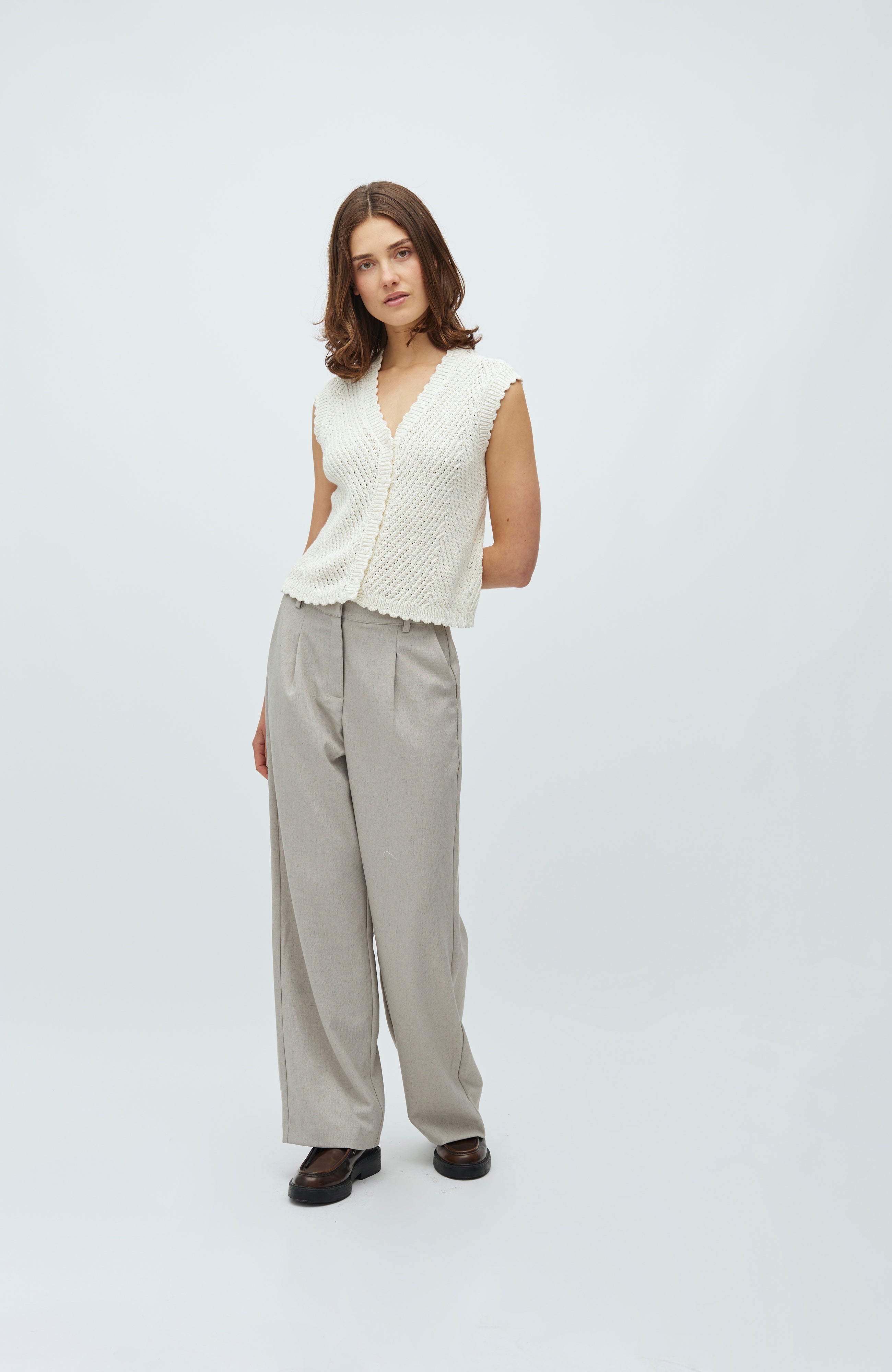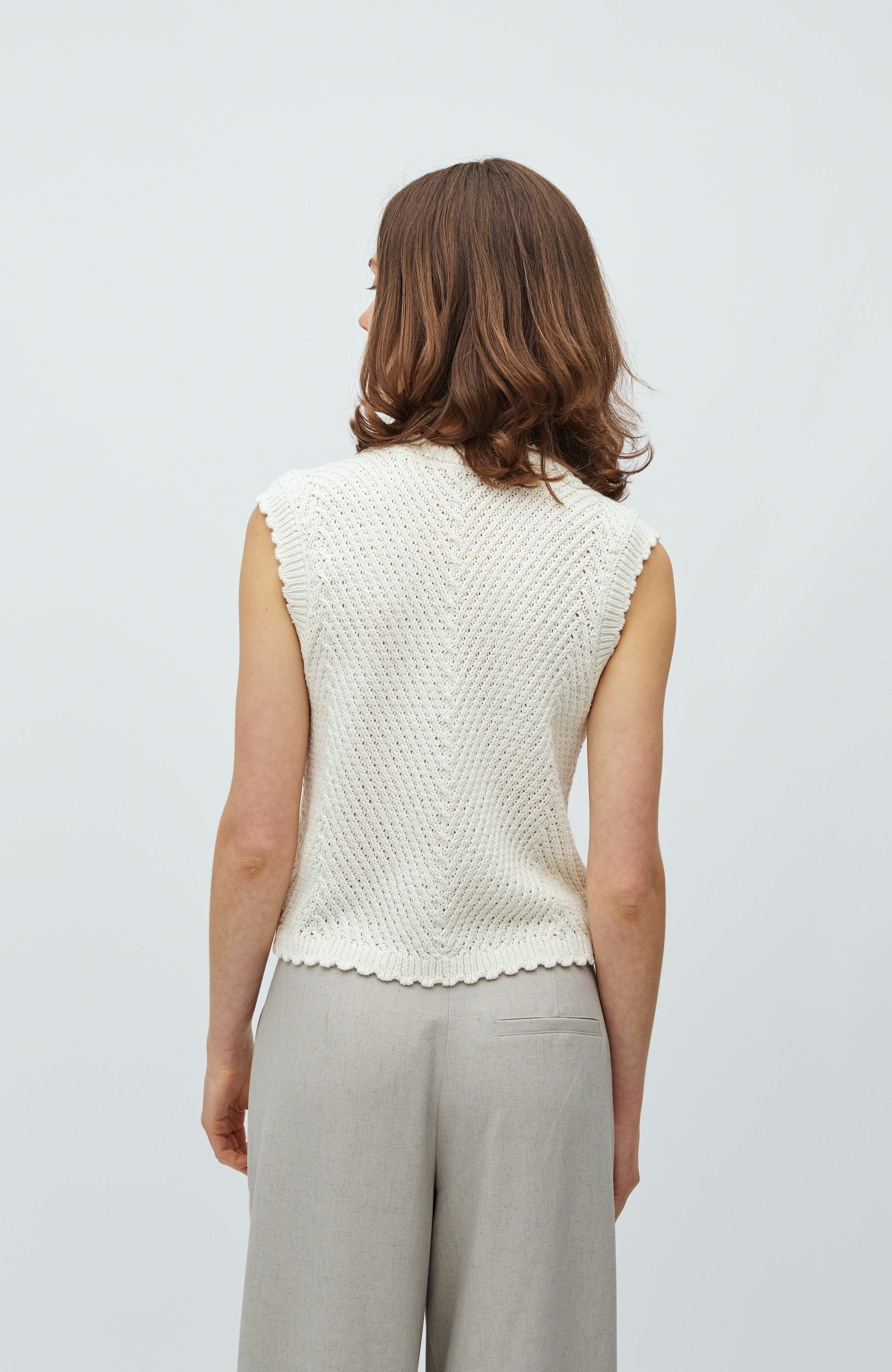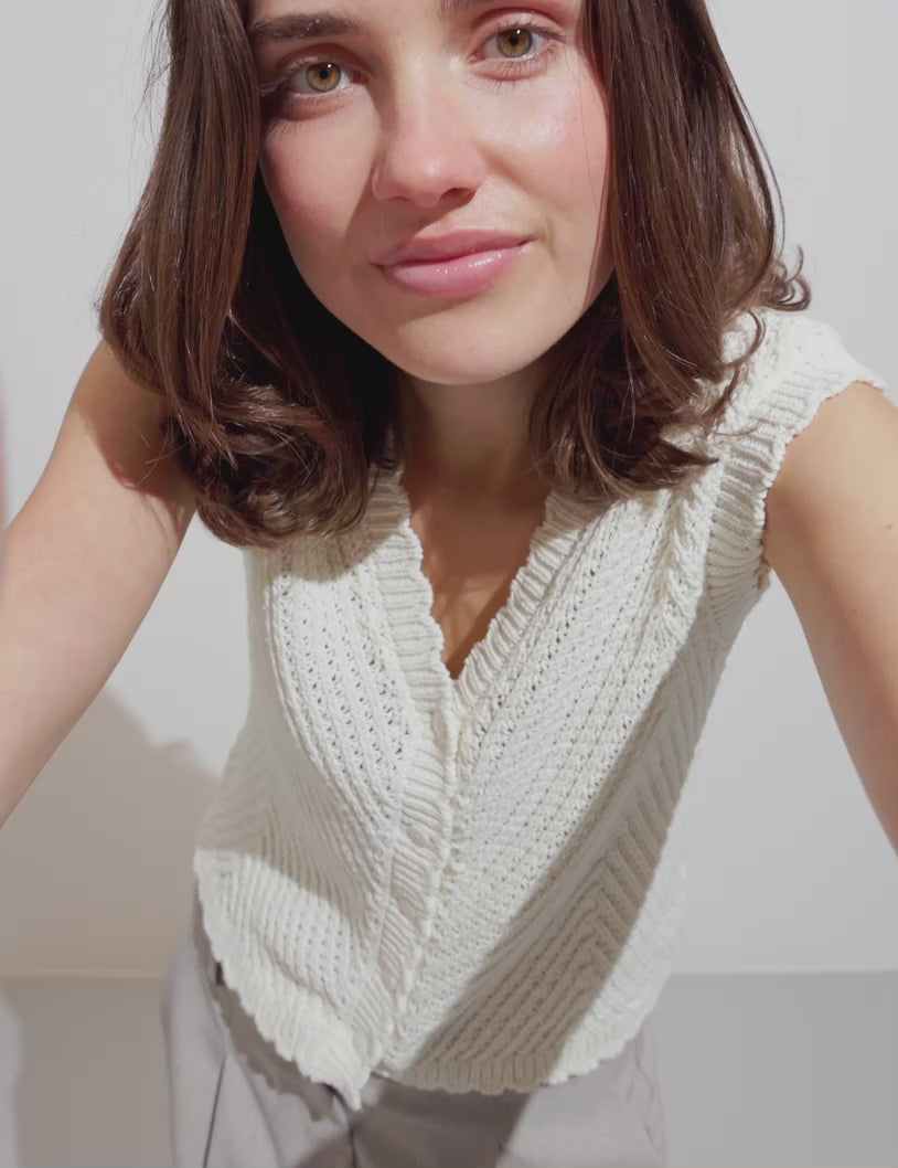 Gebreid vest in een fijn patroon.
