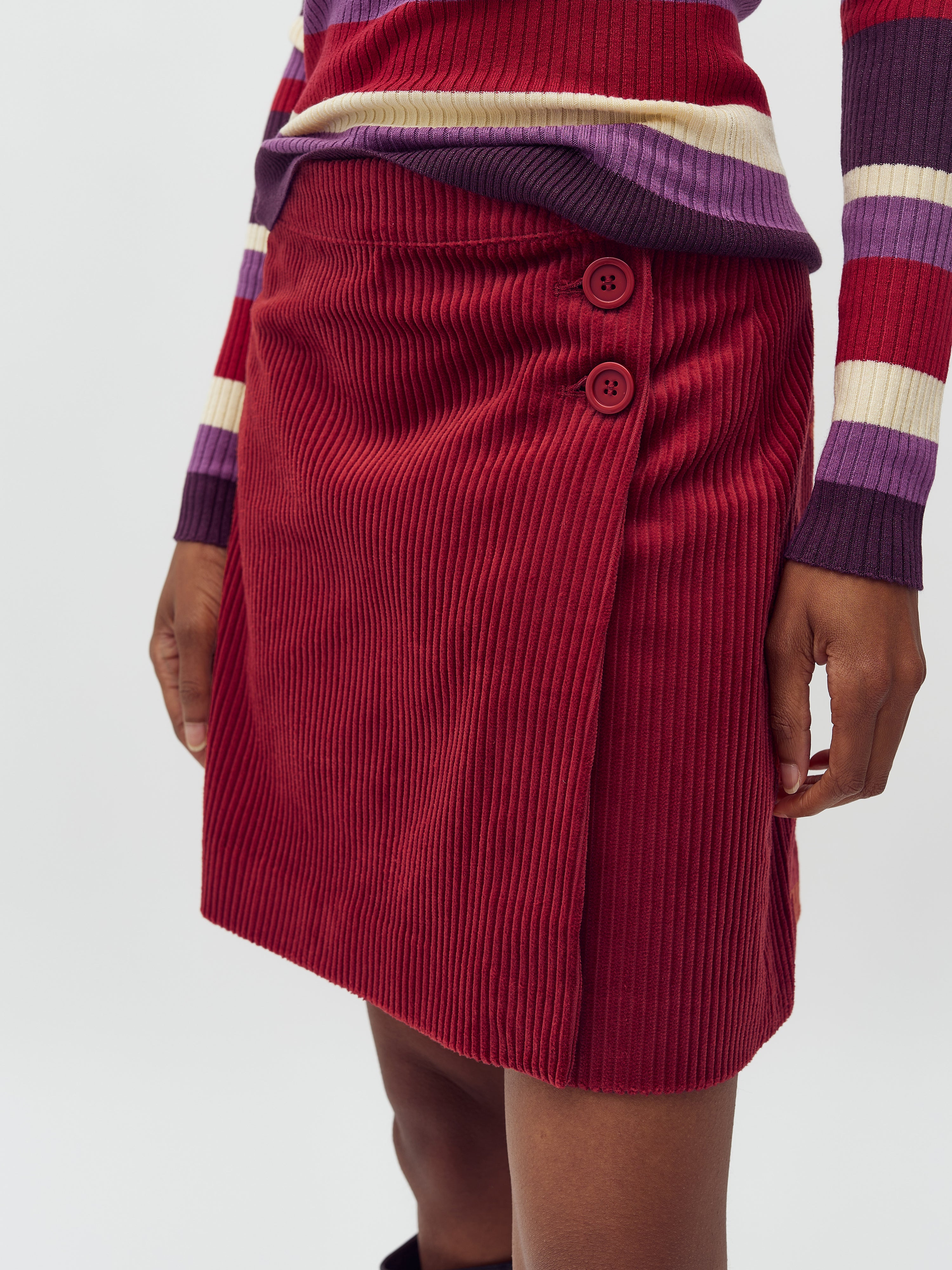 Fluwelen rok met knopen.