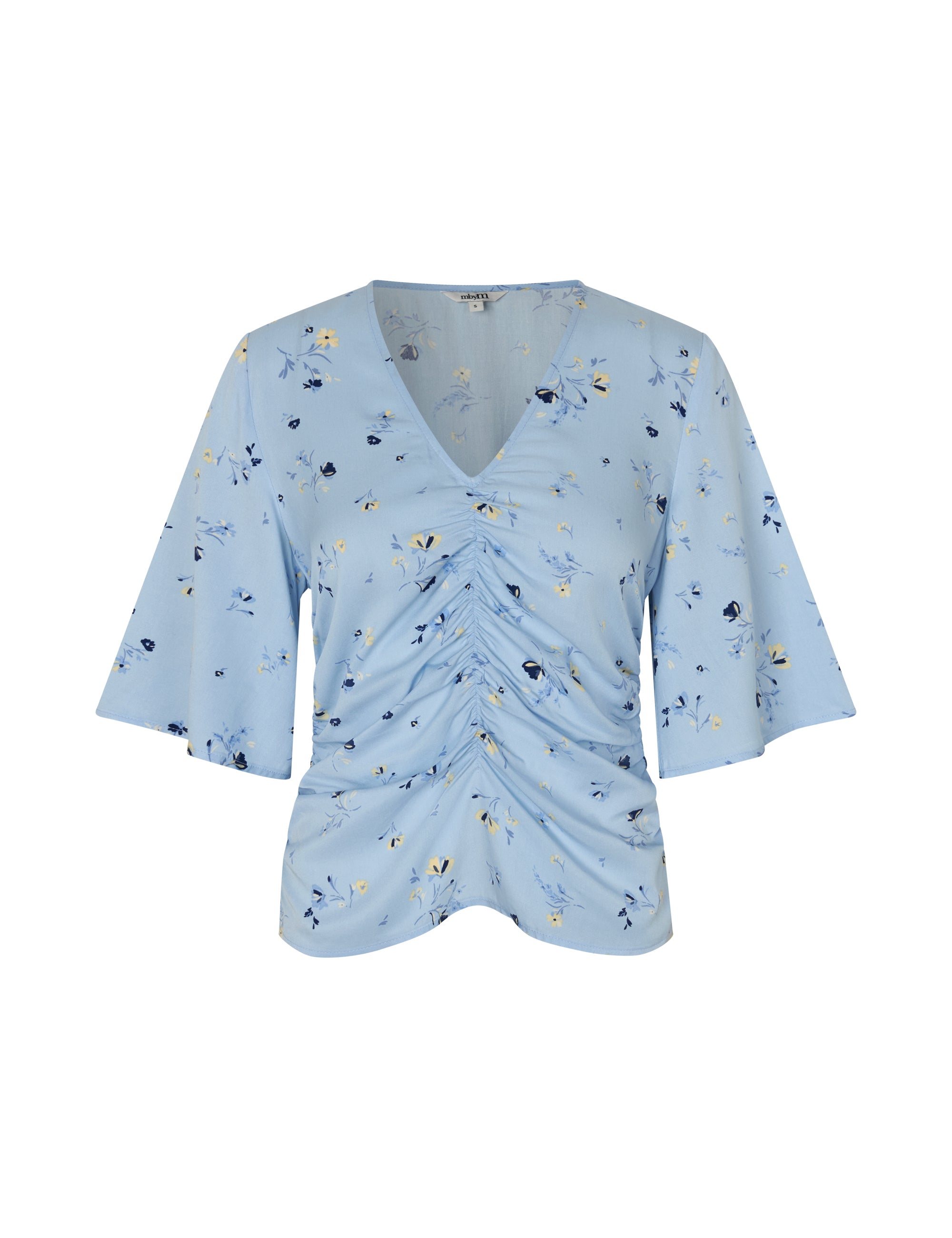 Blouse met rimpels en korte mouwen.