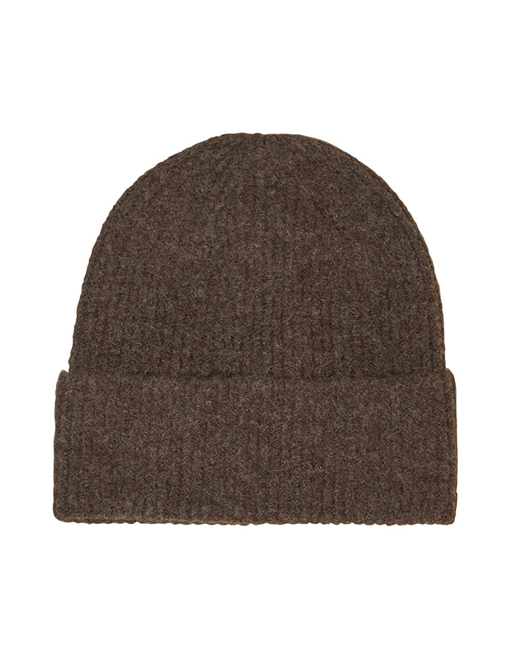 Gebreide muts van zacht materiaal.