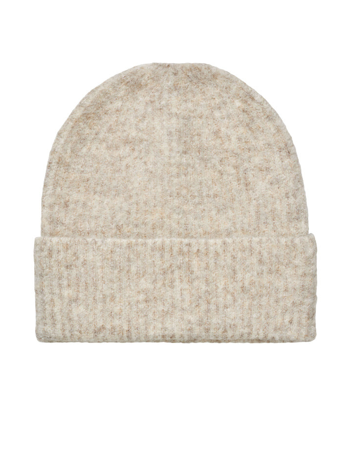 Gebreide muts van zacht materiaal.