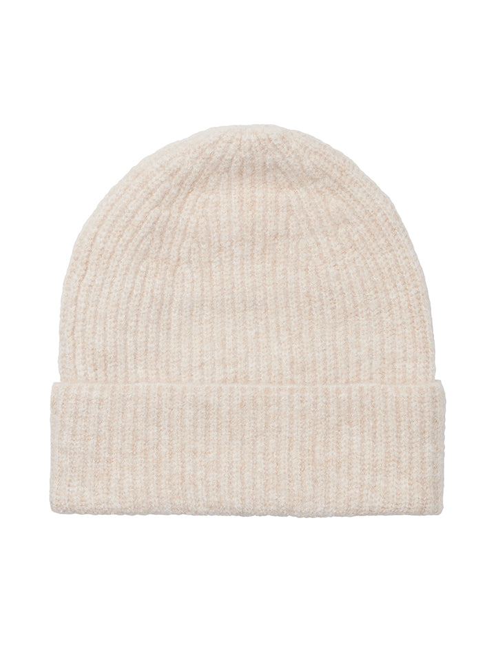 Gebreide muts van zacht materiaal.