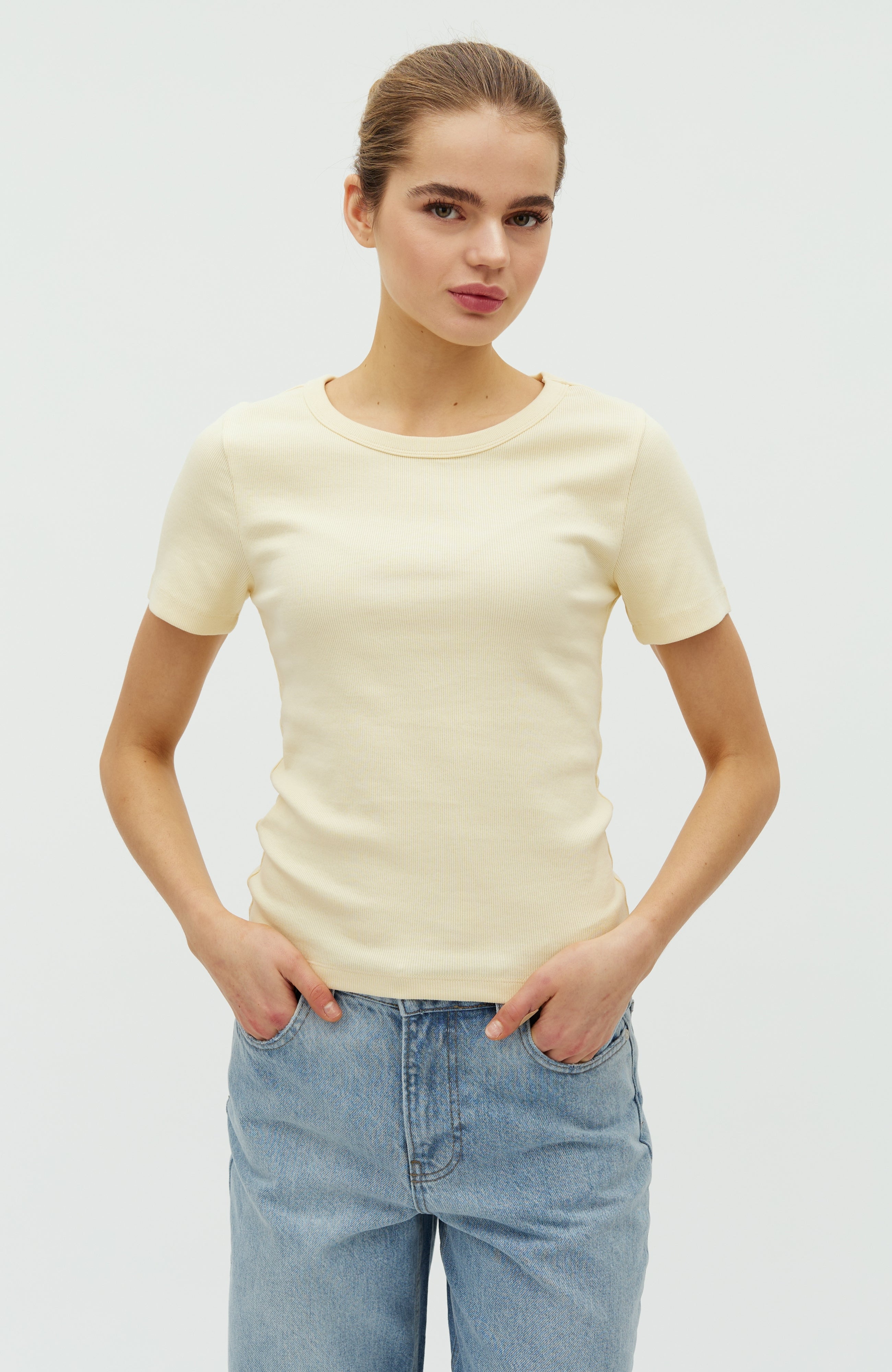 Eenvoudig T-shirt in ribkwaliteit.