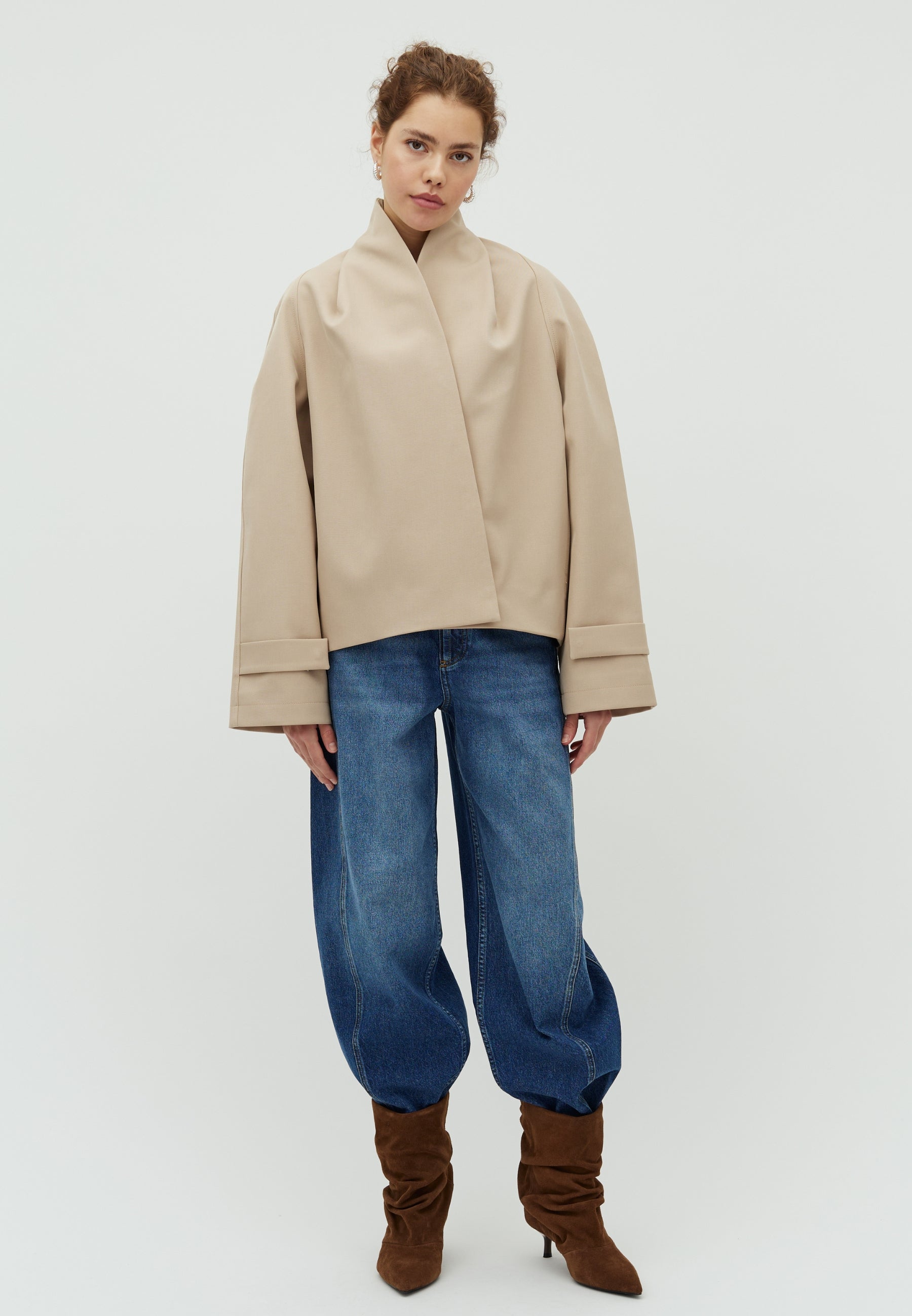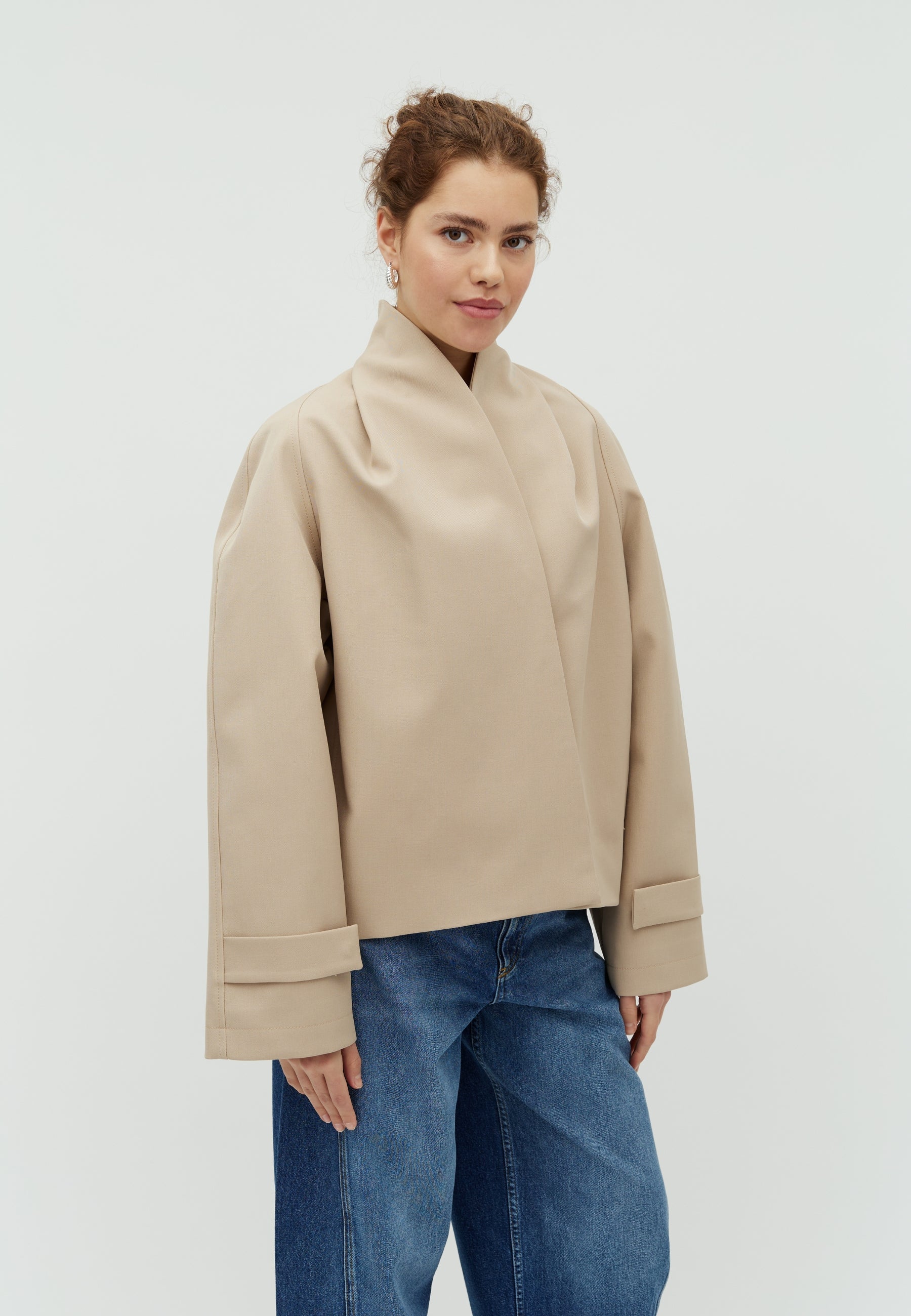 Oversized jas met omslagdetail en hoge kraag