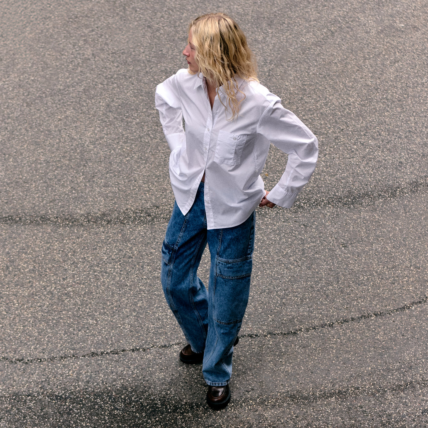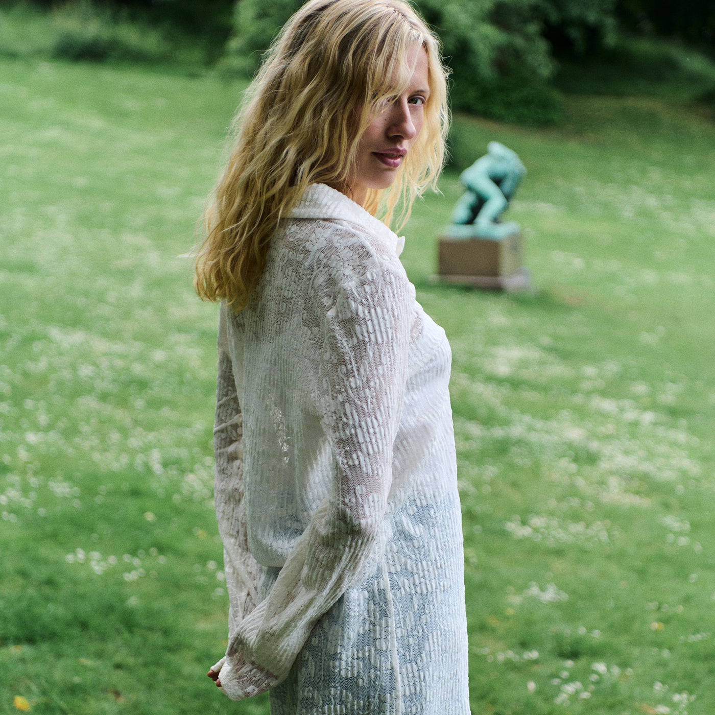 Het model is 179 cm lang en draagt maat S.