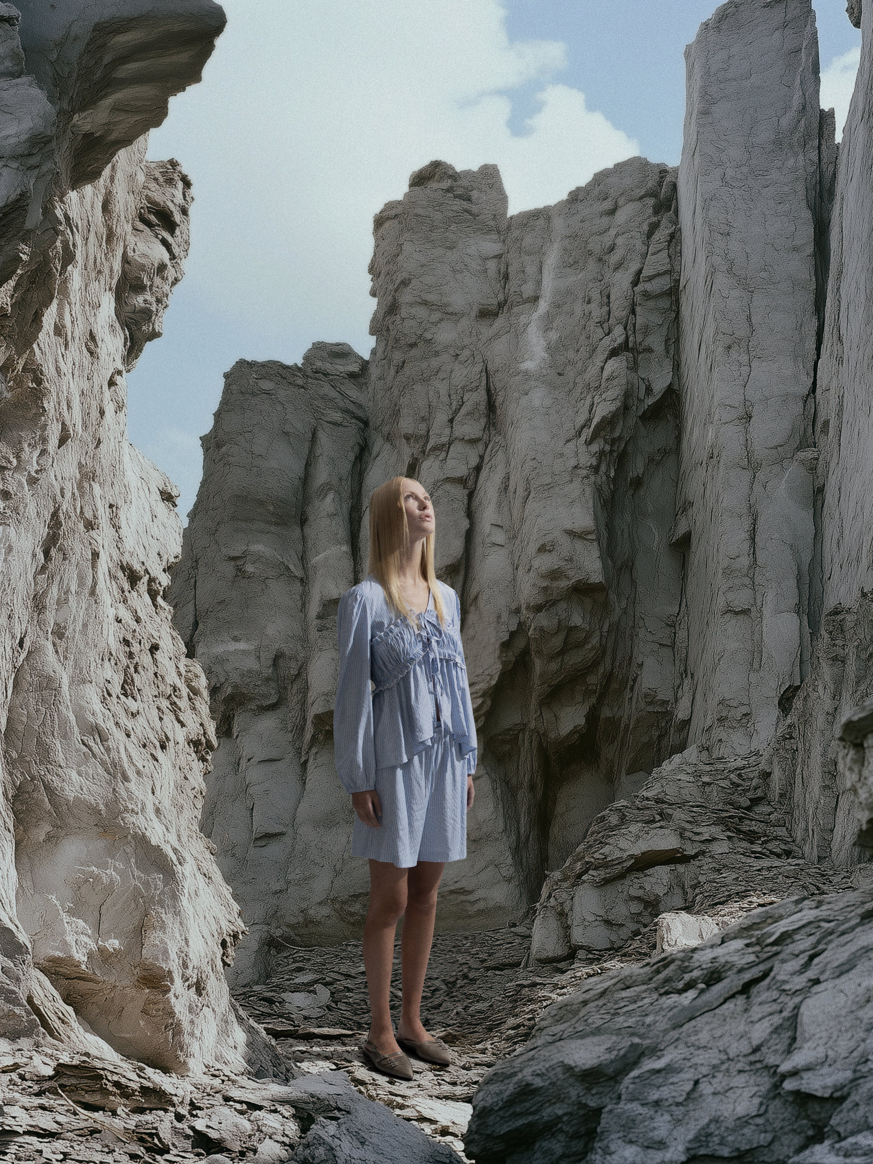 - Moet aan een hanger drogen. In model brengen terwijl het vochtig is.