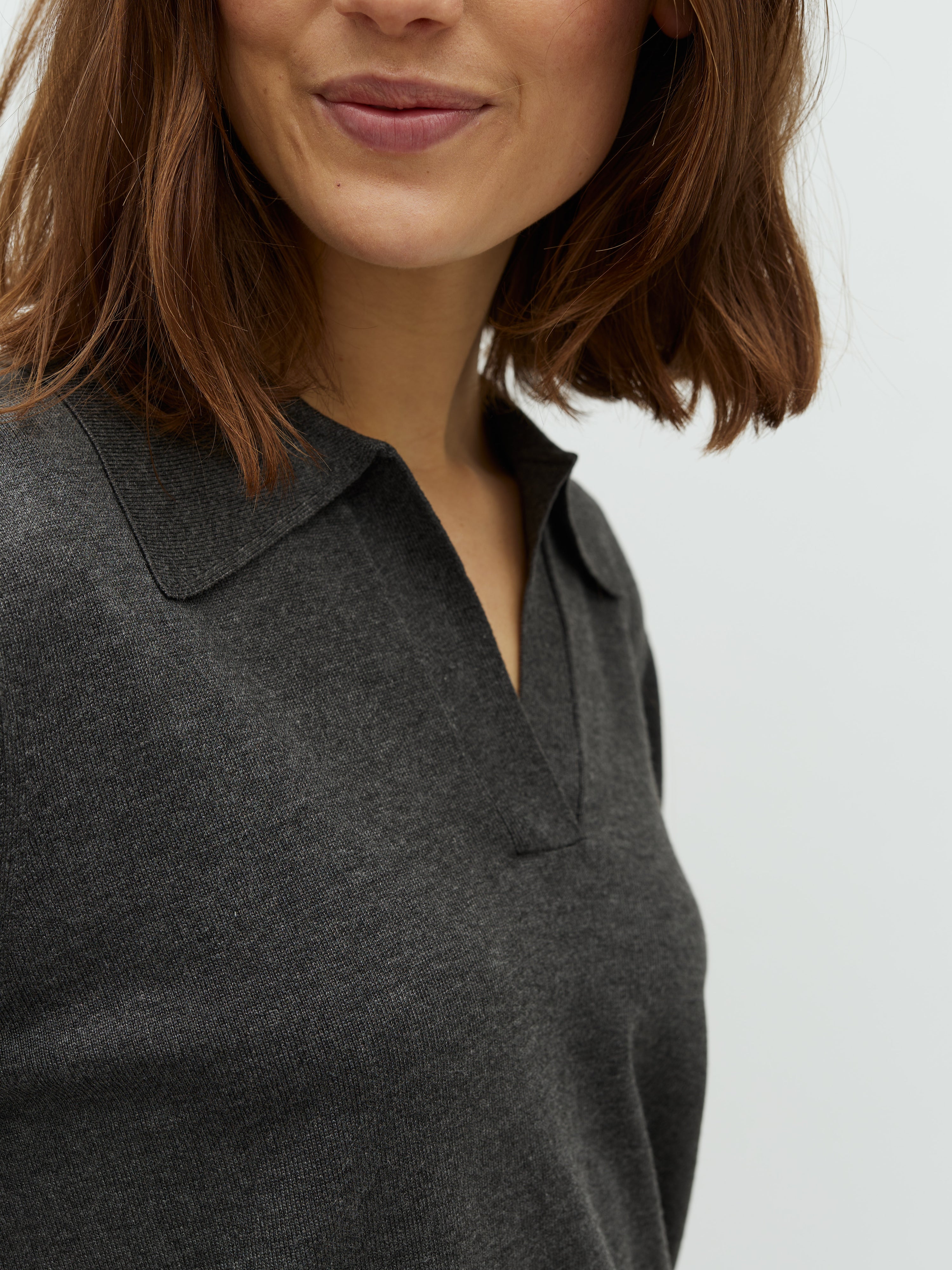 Sika-M Gebreid poloshirt - Dark Grey Melange
