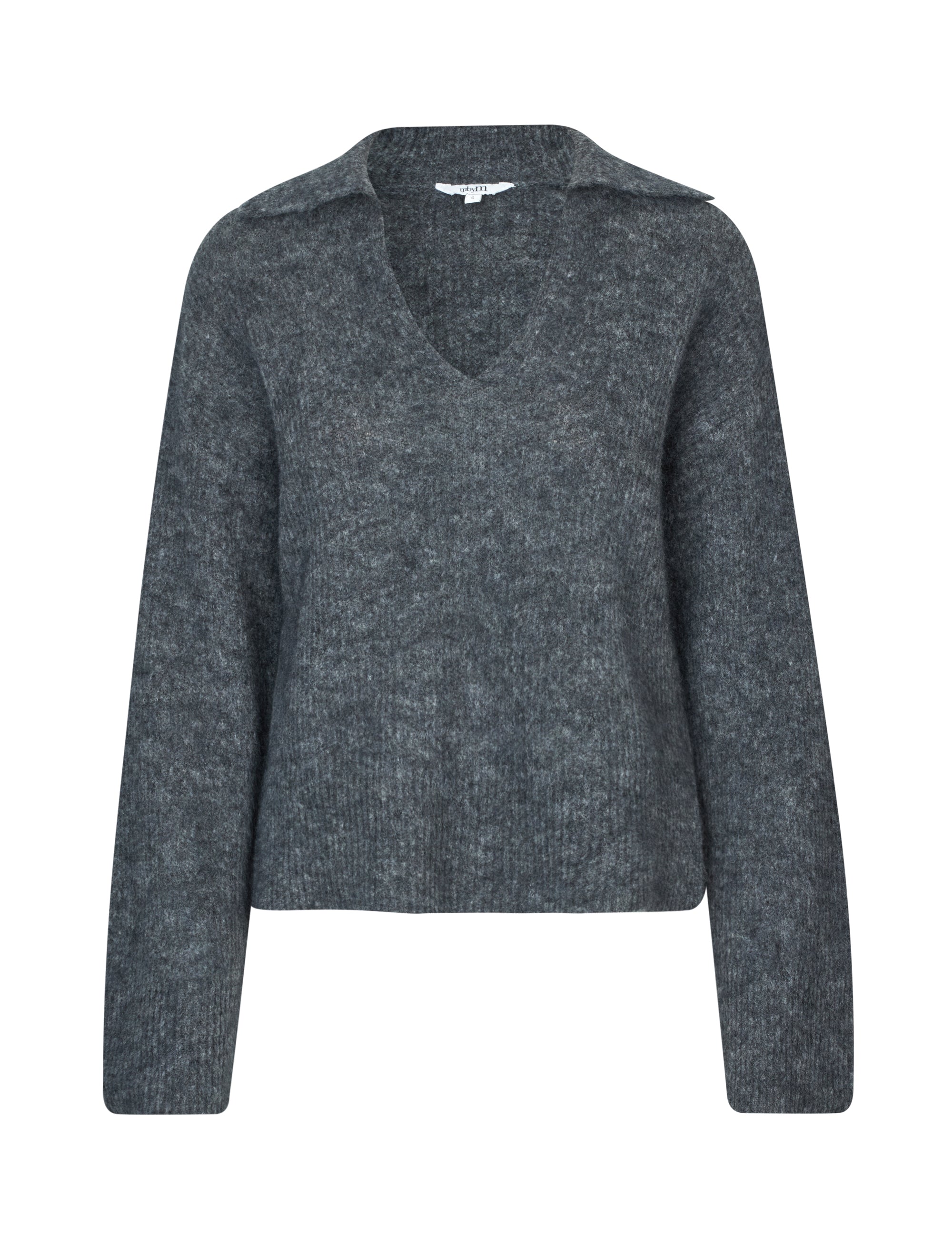 Zachte gebreide trui met kraag en V-hals.