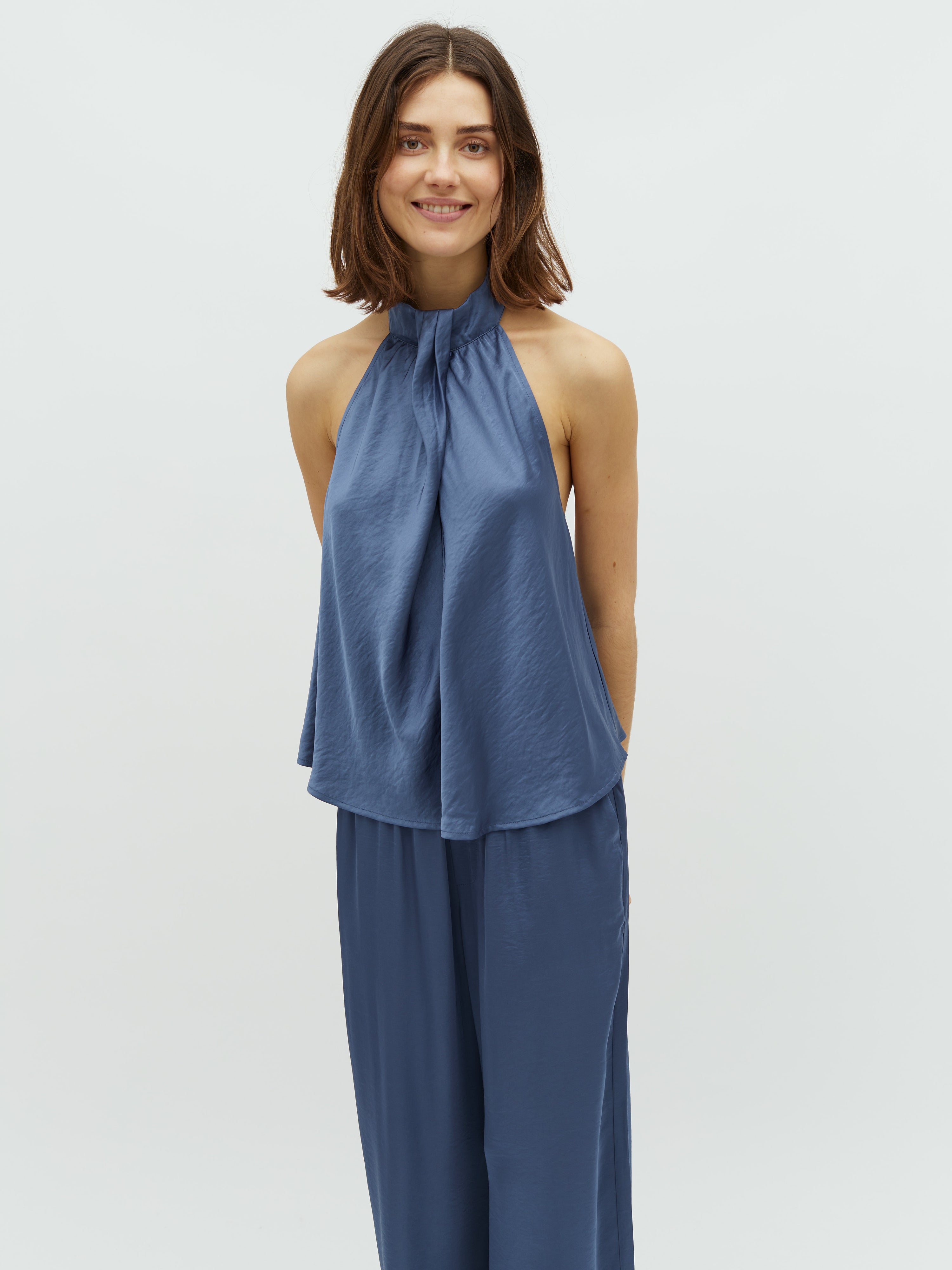 Top met knoopdetail bij de hals.